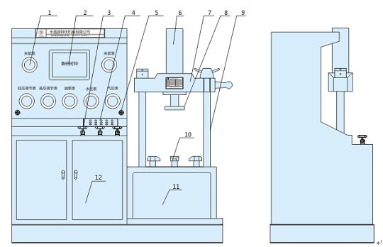 先將供壓泵用的電接點壓力表指針調(diào)節(jié)在所需試壓壓力位置上,關(guān)閉<氣壓開關(guān)>,然后打開<水壓閥開關(guān)>, 按<水泵起動>鈕,即可測試水密封性能的試驗。測試完畢應(yīng)先打開<泄壓閥開關(guān)>排放壓力后卸下被試閥門。