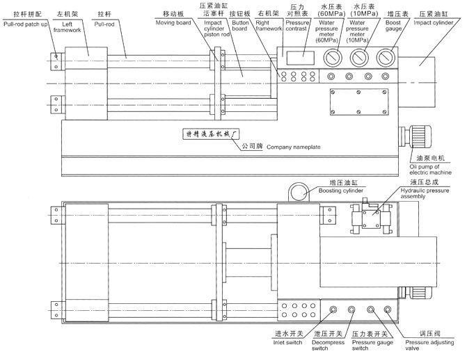 四、接通電源,按油泵起動,檢查電機轉動方向是否正確(順時針方向),調節(jié)油泵壓力在5 0MPa進行試機,檢查各管路有無泄漏,發(fā)現(xiàn)不良現(xiàn)象應立即進行檢修。