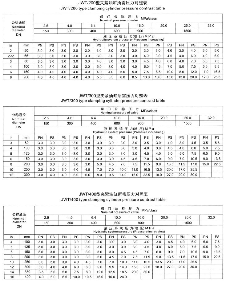 五、測試閥門時,首先根據(jù)被試閥門試驗要求參照《壓緊油缸所需壓力對照表》進行試驗壓力增壓調節(jié)。嚴禁增壓超高壓工作。防止被試閥門變形損壞。