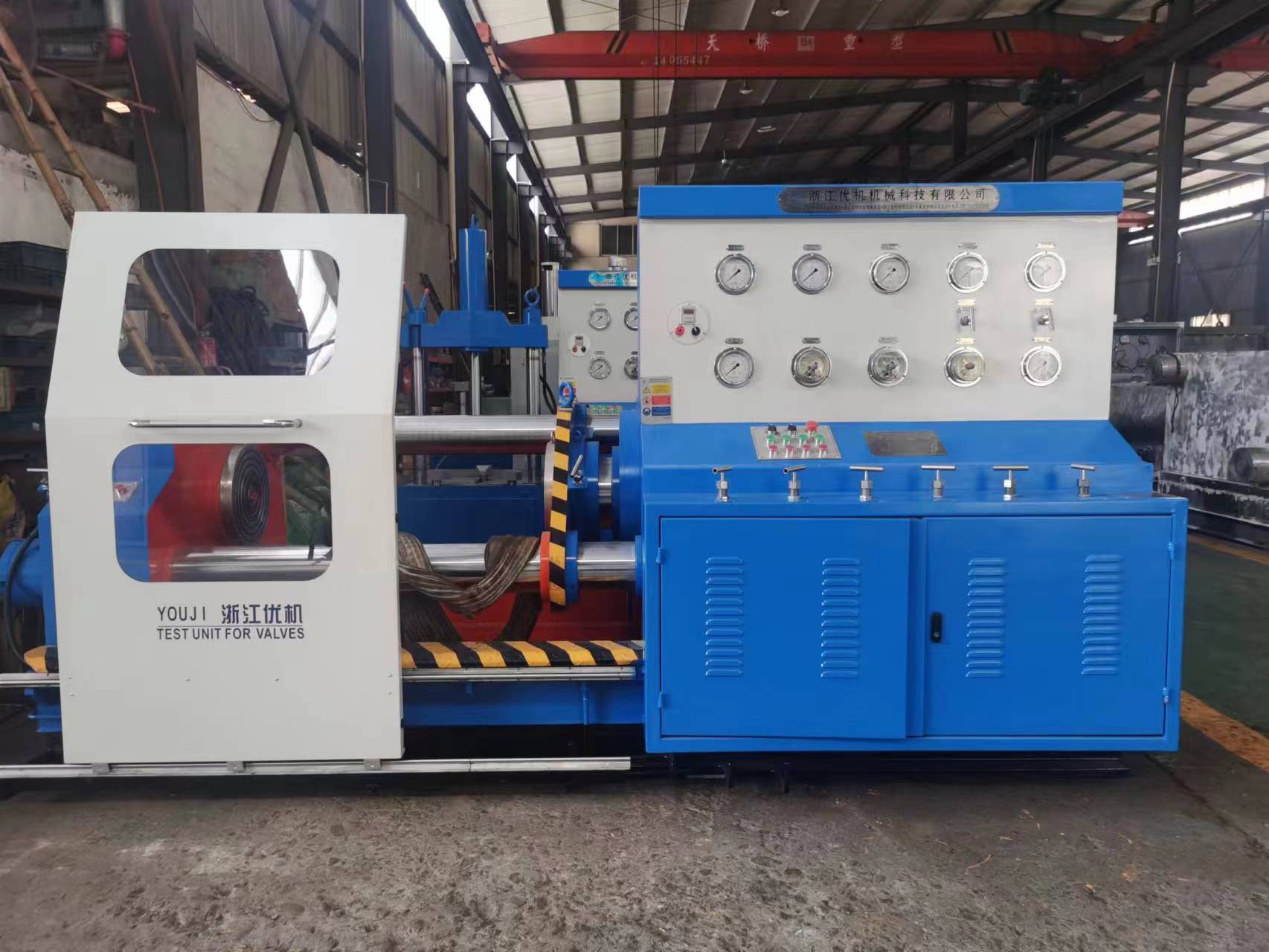 閥門測試完成時,先關閉進水閥門開關,開啟泄壓閥門開關,將施壓介質壓力排放完畢以后,點動工作放松按鈕,卸下被試閥門。按照上述程序再測試另一閥門。