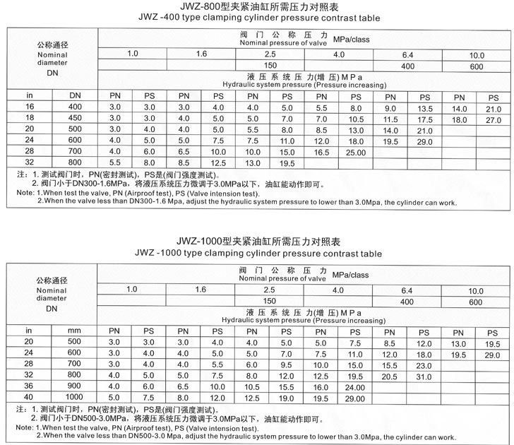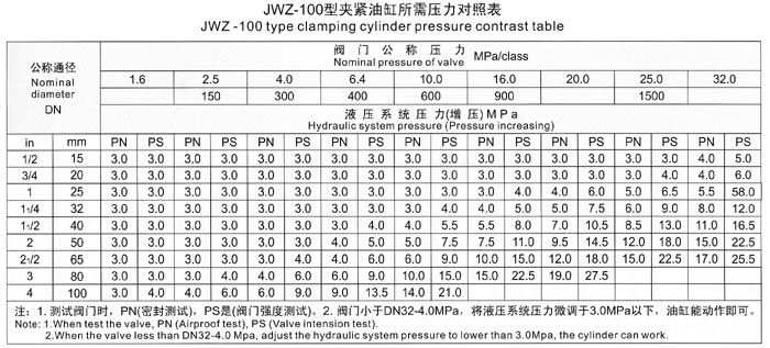 五、測試閥門時,首先根據(jù)被試閥門試驗壓力,要求參照《壓緊油缸所需壓力對照表》中液壓壓緊系統(tǒng)壓力值,進行增壓壓力調(diào)節(jié),嚴(yán)禁增壓壓力值超高、防止被試閥門變形損壞。