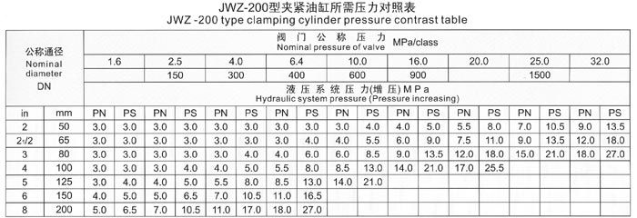 九、JWZ型壓力對照表
