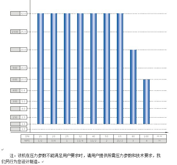 3.3??JWZQ-300型 (潛水式)閥門公稱通徑與公稱壓力試驗范圍