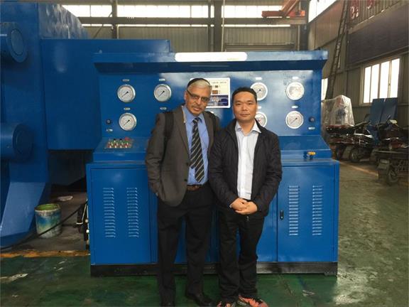 近日,印度(IVC)閥門公司INDIAN VALVE PVT.LTD總裁Mukherjee先生親自來浙江優(yōu)機機械科技有限公司驗收1月份定制的蝶閥、球閥試驗臺,這次訂購的設(shè)備是優(yōu)機公司國家專利產(chǎn)品:ZL 2014 2 0194312.6,液壓系統(tǒng)合理節(jié)能,操作人性化設(shè)計,是1月份該閥門公司技術(shù)部經(jīng)理Tomy 先生來中國實地考察各大廠家生產(chǎn)工藝及企業(yè)資質(zhì)后精心篩選確定下來的采購設(shè)備,這次采購的設(shè)備是代替IVC公司原有老式閥門測試臺主要水壓和氣壓試驗16”-32”的蝶閥和球閥。