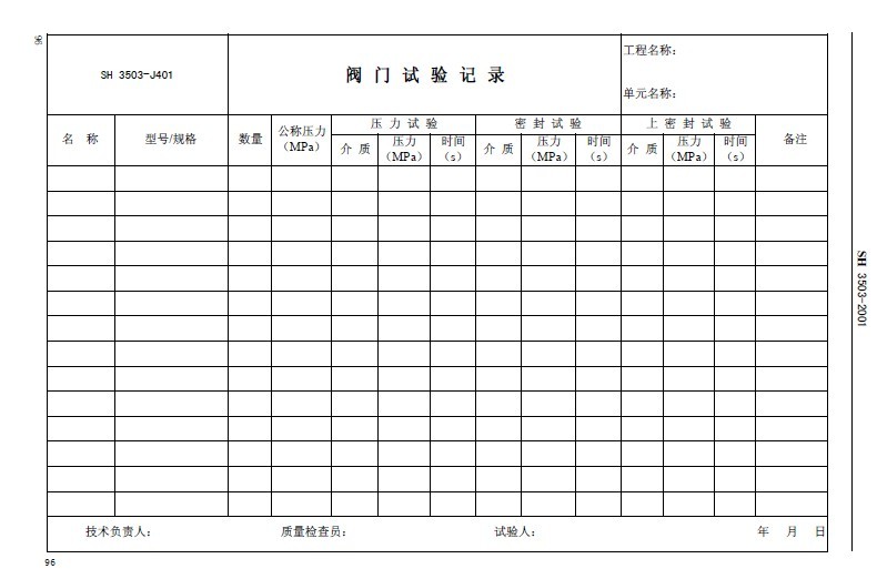 閥門試驗表格用于閥門出廠、安裝前閥門試壓檢測的記錄依據(jù),對閥門產(chǎn)品出廠和使用后唯一留底的性能指標(biāo)數(shù)據(jù)檔案,廣大客戶可以下載參考此表格,特優(yōu)機(jī)械-技術(shù)部